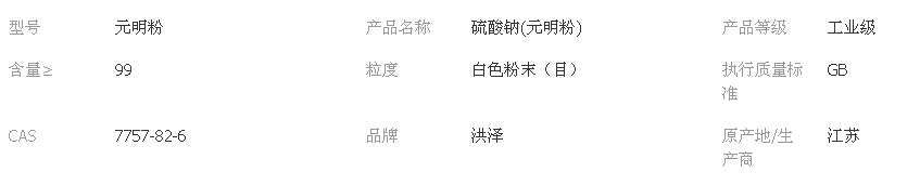 硫酸鈉又叫元明粉,是無水化合物,白色、無臭、有苦味的結(jié)晶或粉末,有吸濕性。外形為無色、透明、大的結(jié)晶或顆粒性小結(jié)晶。